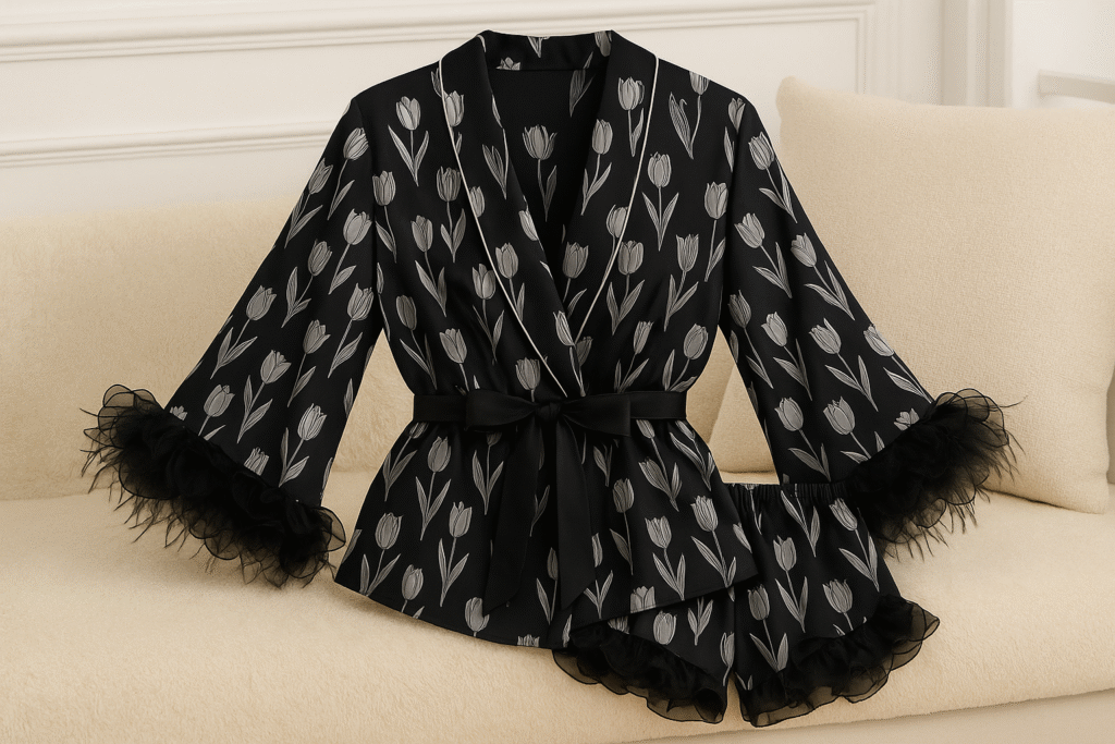 نصيحة: اختاري بيجامة دانتيل بيضاء أو بلون الخوخ، مع لمسة حرير صغيرة على الأطراف، لتجمعي بين الرقة والفخامة.