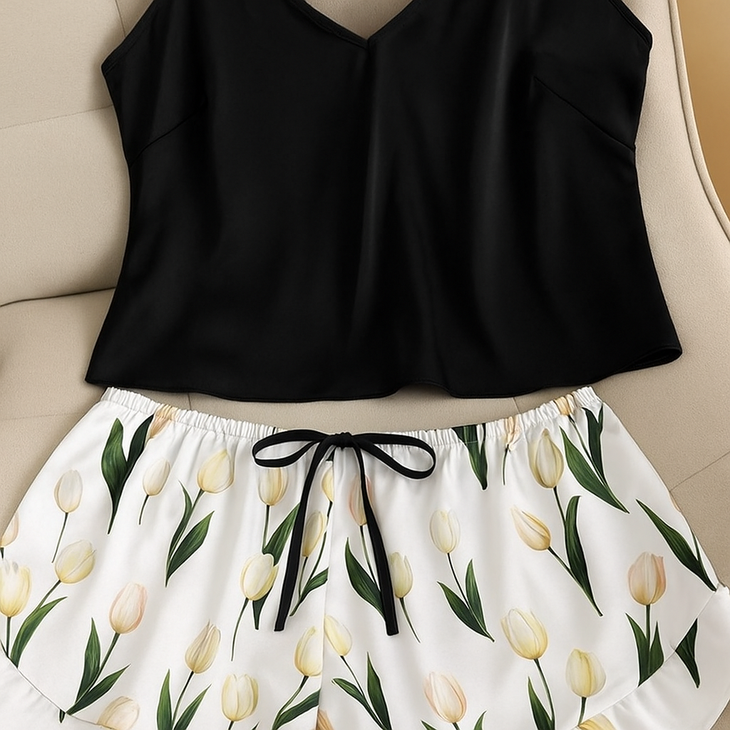 • اختاري بيجامة بقطعة علوية فيها تفاصيل عند الأكتاف أو الصدر، مثل تطريز أو دانتيل، لتوازن شكل الجسم.