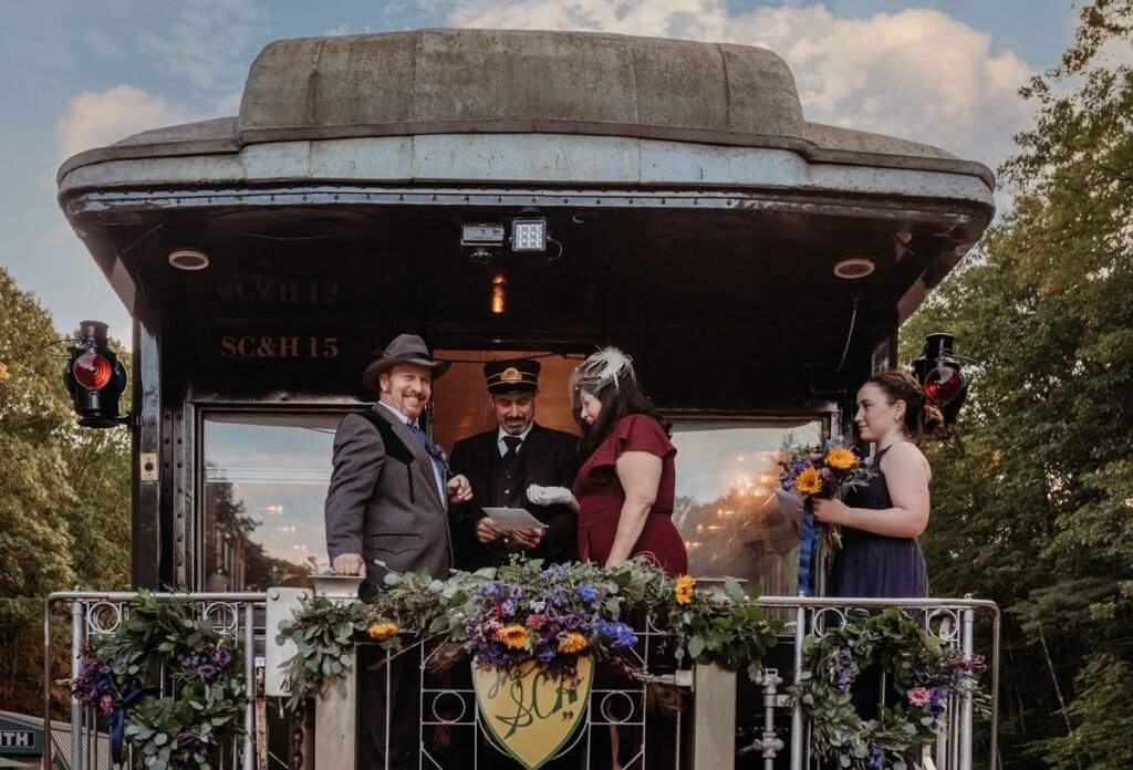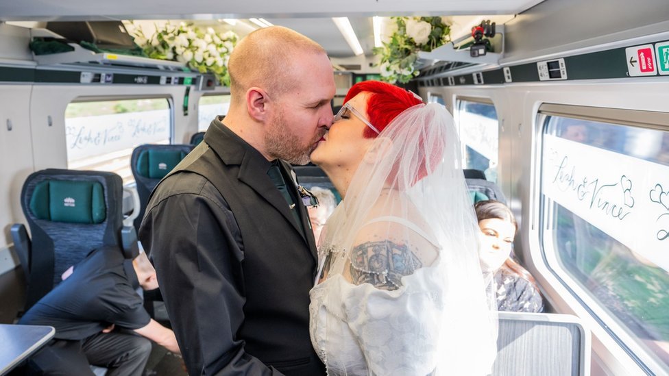 استأجر الزوجان قطاراً كاملاً، وتم تحويل العربات إلى قاعة احتفال.