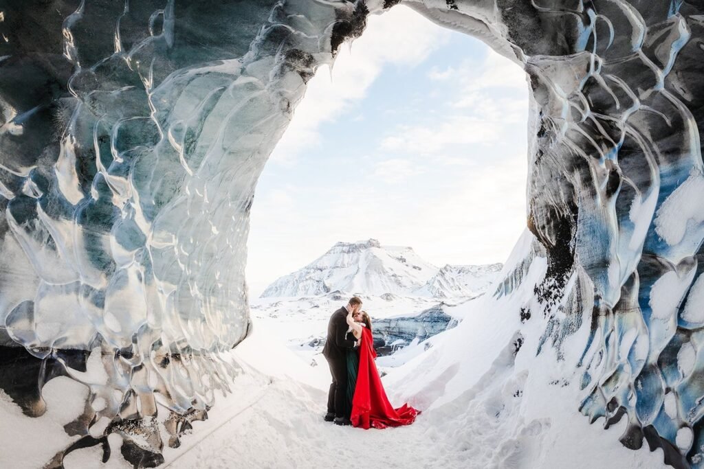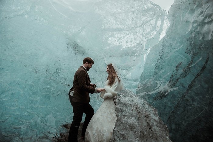 في آيسلندا قرر زوجان إقامة زفافهما داخل كهف جليدي طبيعي.