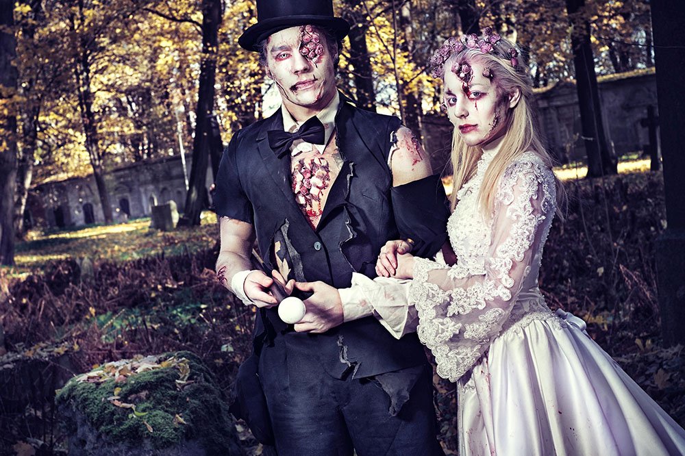 في بريطانيا قرر زوجان عاشقان لأفلام الرعب أن يكون زفافهما مستوحى من أفلام الزومبي.